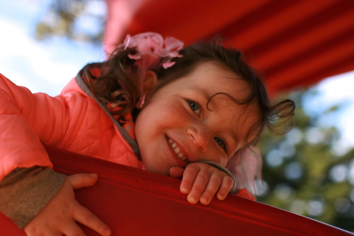 Evie: Pigtails and a smile on a slide