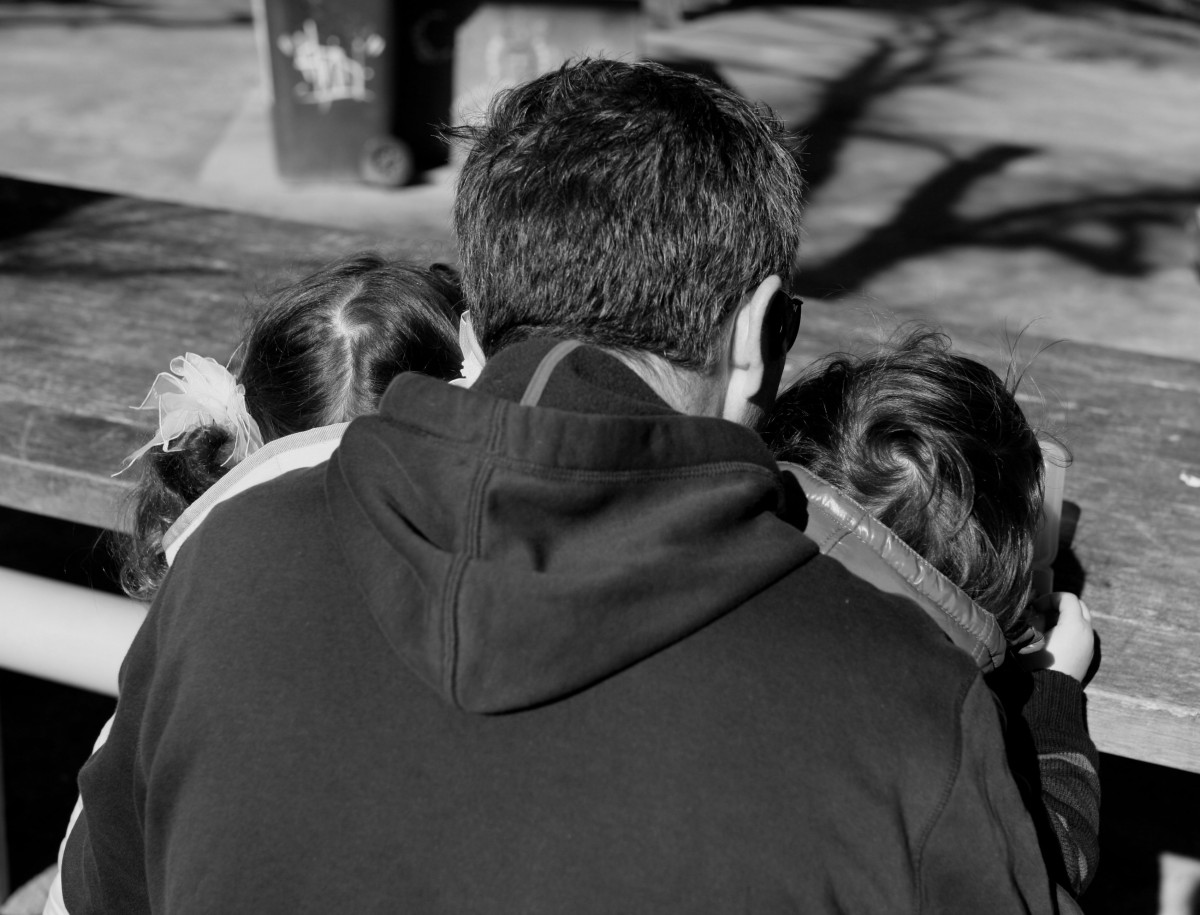 Together: A close cuddle with dad and the winter sun warming our backs