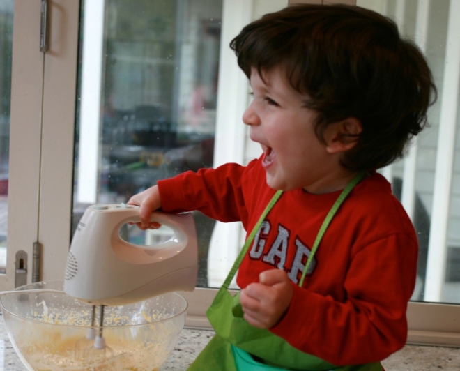 Jake: He loves helping mom with baking, especially when it's to make his own birthday cake.