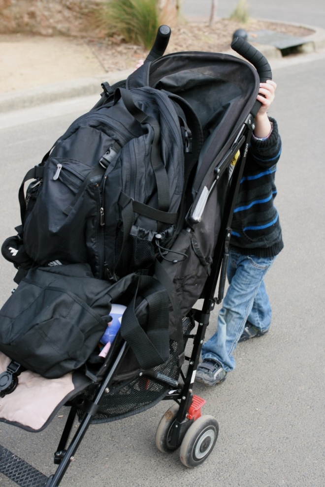 Jake: As part of his increasing independence, he insists on pushing the stroller by himself, despite not being able to see where he is going. Good luck to those that get in his way!
