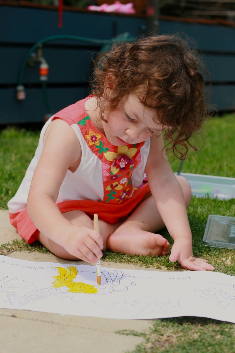 Evie: She will sit quietly and paint for hours. Gone are the days of abstract scribbles and she is now very particular about painting specific objects and images
