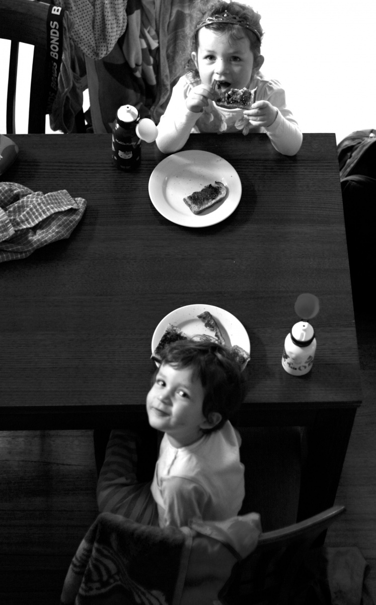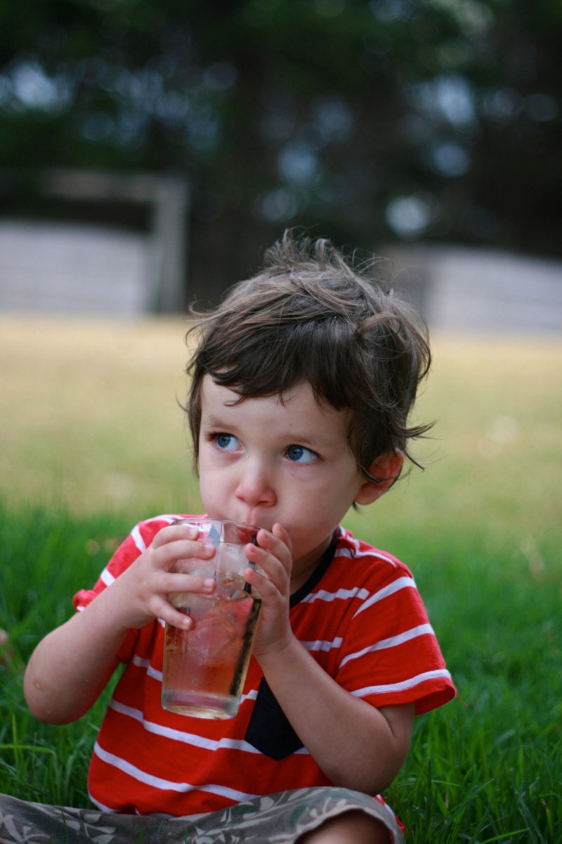 Jake: It is a very rare treat for my kids to get juice to drink. Jake is downing this apple juice (diluted!) with gusto
