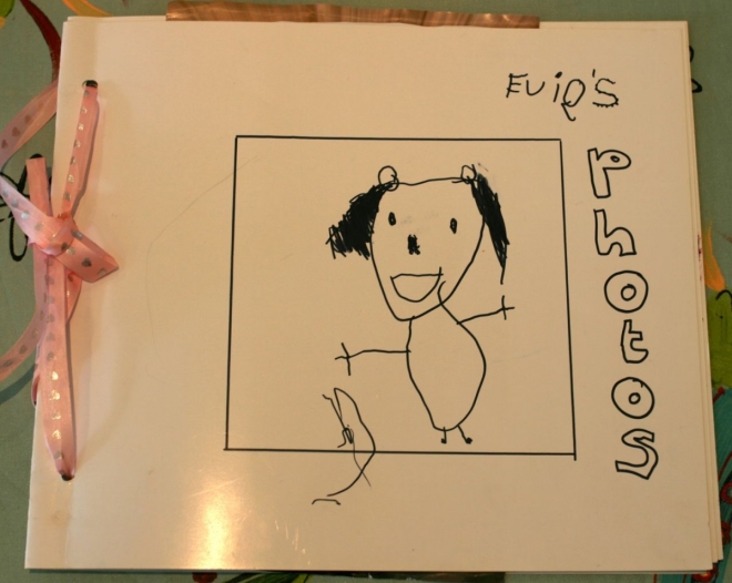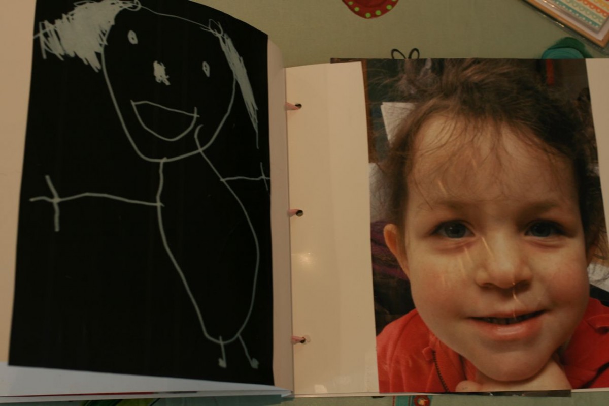After trying fruitlessly to remind Evie that she could only choose a couple of photos as the whole album is expensive and not necessary, I left a very sulky and unhappy four year old in the embrace of her kindergraten teacher Lindsay. Upon arriving in the afternoon for school pick up, I found that someone had removed the little girl with the big pout that I had dropped off, and instead replaced her with a bouncy ball of delight as she came running up to me to show me her own special photo album.