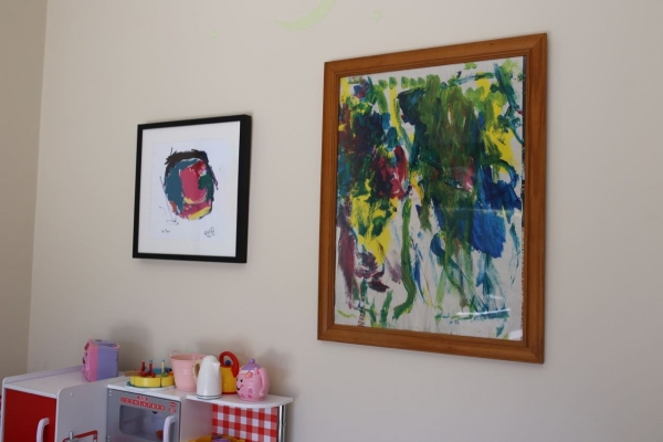 The kids art wall has been updated these school holidays. we chose one of each of their favourite artworks to frame and updated the wall of art with Evie’s two years worth of kinder art and Jake’s home and childcare art.