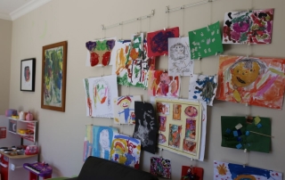 The kids art wall has been updated these school holidays. we chose one of each of their favourite artworks to frame and updated the wall of art with Evie's two years worth of kinder art and Jake's home and childcare art. Evie was very impressed and decided it looks like an art exhibition.