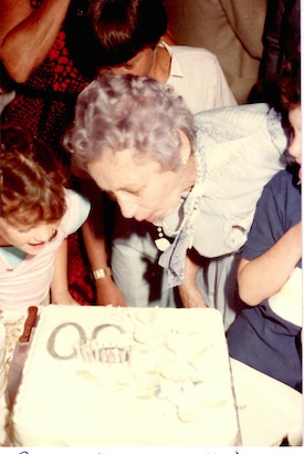 My great grand at her 90th birthday and myself in the corner helping her blow out the candles.